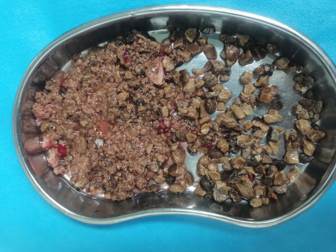 完善术前准备,为确保手术顺利进行,手术当天特邀雅安仁康医院院长崔建强与雅安仁康医院外科谭军副主任医师到院共同为王先生实施手术,术中崔院长在超声引导下精准穿刺找到左肾结石,建立约“筷子”粗细单孔通道后再由谭医生利用气压弹道与钬激光交替击碎较大结石,然后取出,术后患者安返病房,术后复查左肾结石几乎全部击碎取出,困扰了王先生多年的结石终得到了解决。