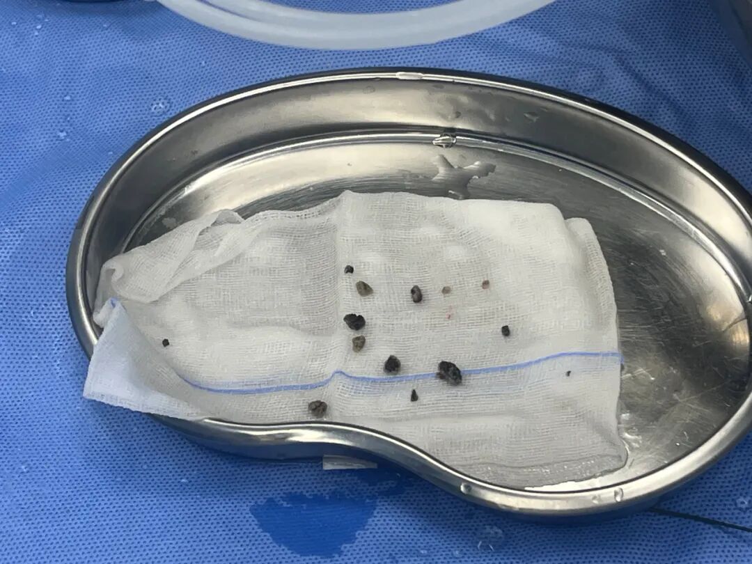 在处理最大的一颗结石时。因体积大且位置特殊,紧贴肾盂壁。稍有不慎,就可能损伤肾脏组织,导致大出血。谭主任凭借丰富的经验,精准操作,最终成功将这颗“顽固分子”击碎并取出。经过1个多小时的努力,手术顺利完成。王阿姨左肾内的结石被彻底清除,肾积水问题也得到了解决。
